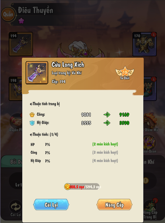 Chọn trang bị muốn nâng cấp → bấm Nâng Cấp