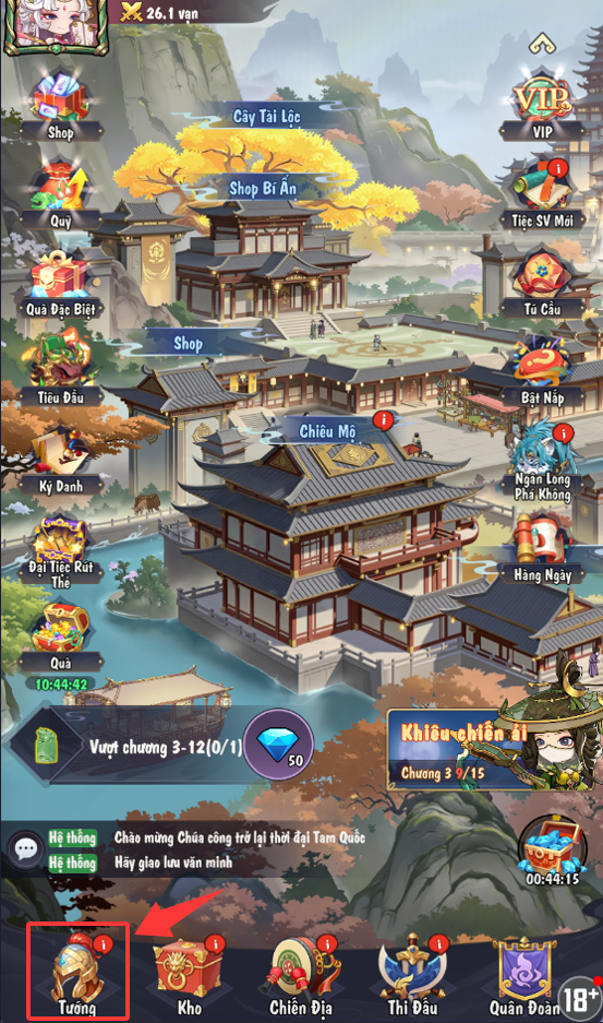 Vào Tướng → chọn Tướng muốn nâng cấp trang bị