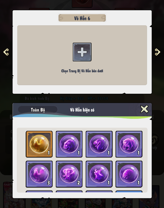 Khi chọn ô trống trong Võ Hồn, hệ thống sẽ hiển thị toàn bộ Võ Hồn Kì Thủ đang có ở bên dưới.