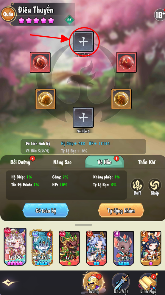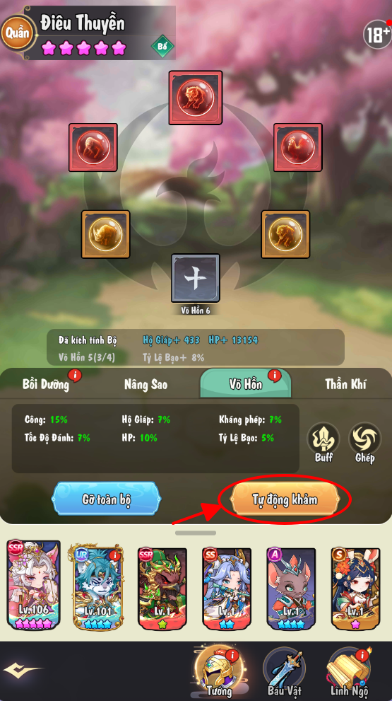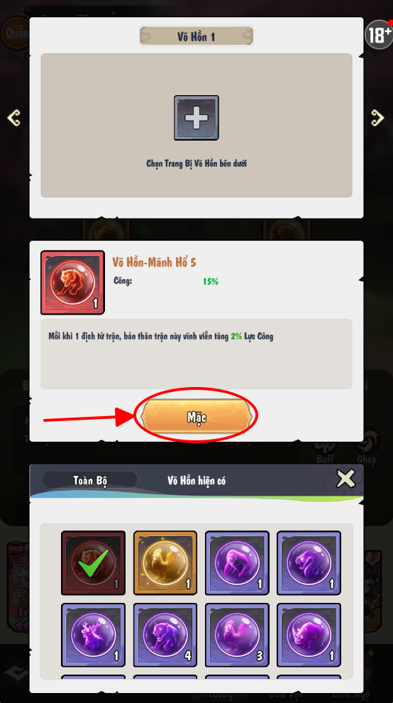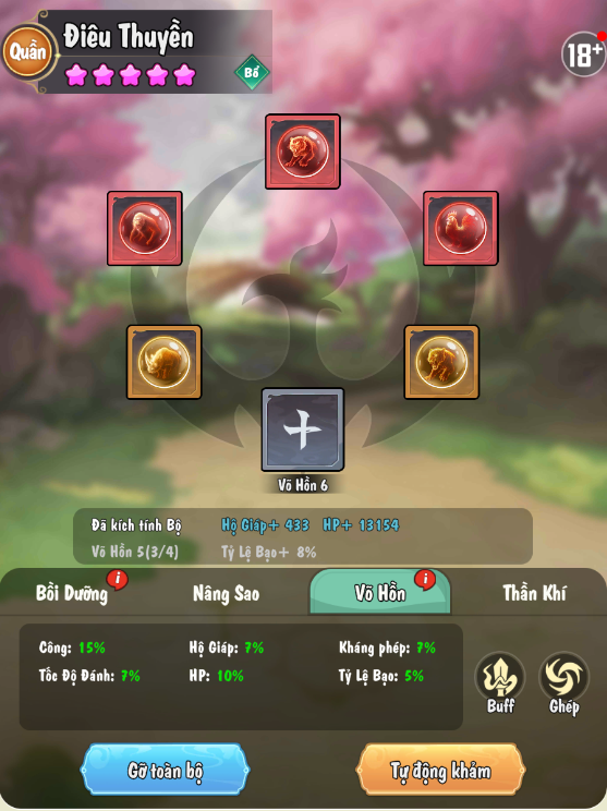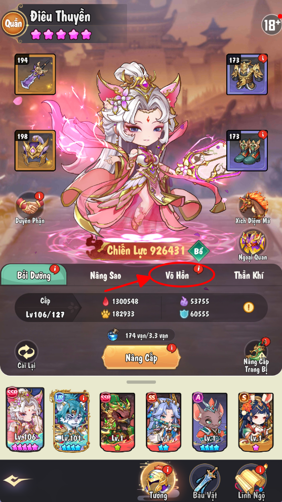 - Hãy nâng cấp Võ Hồn thường xuyên để tối ưu sức mạnh cho Tướng và đội hình.